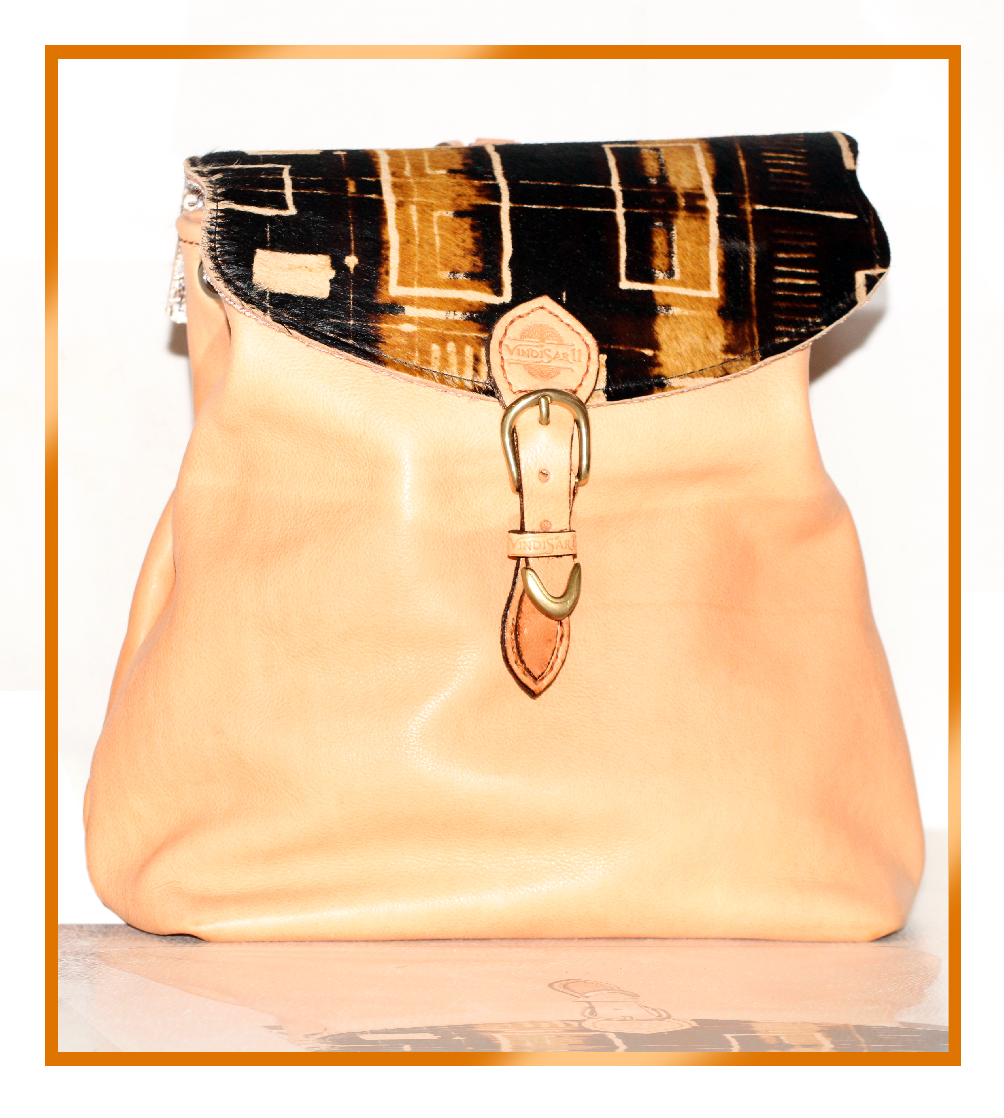 Sportello in pelo di cavallo su pelle. Sacco Color Naturale di pelle morbida