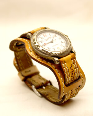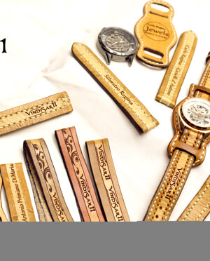 Realizzato sulle misure e sulle scritte del cliente. Disponibile con decorazioni o disegni al laser. Cuciti solo ed esclusivamente a mano. Ogni cinturino presenta la parte centrale per il polso.